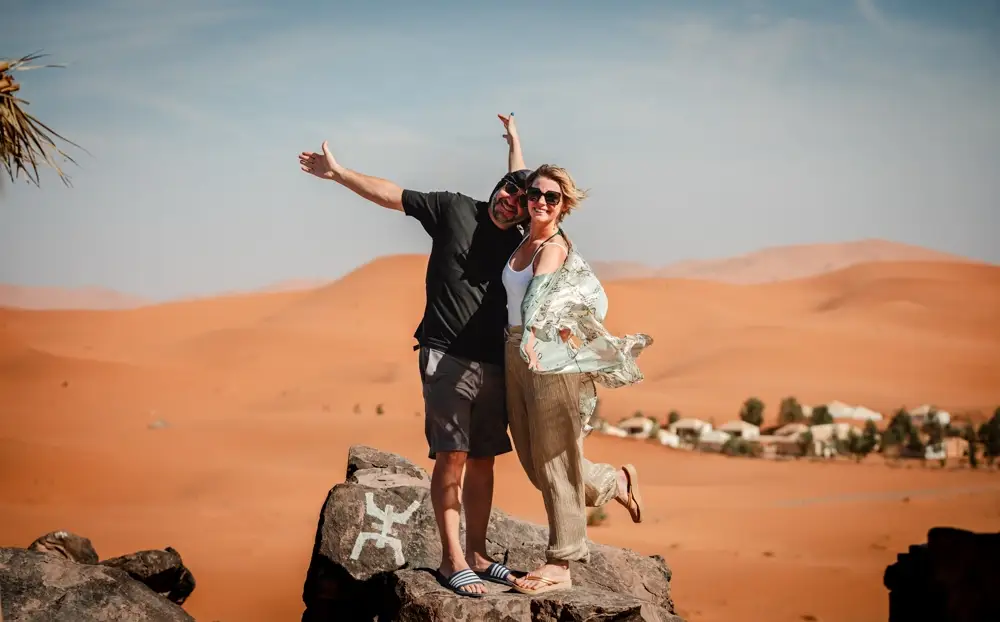 We are in the desert! After a hearty and delicious breakfast, we will drive around the Great Dune of Morocco, Erg Chebbi which is over 250 meters high. We will stop at the oasis of Tissardmin and then follow a route to a nomad settlement where we will learn some of the secrets of the desert life and customs.